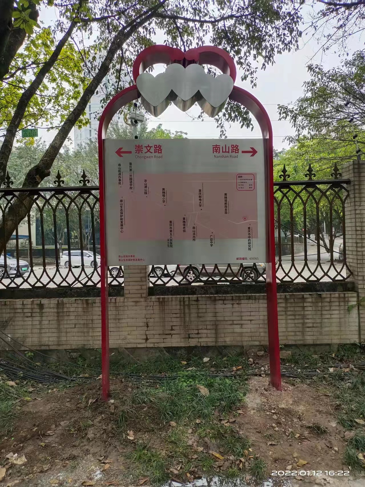 4、重慶標識標牌的樣式為地柱形:標記在地面的某些固定構造上的橫形、豎形、立體形的標識標牌